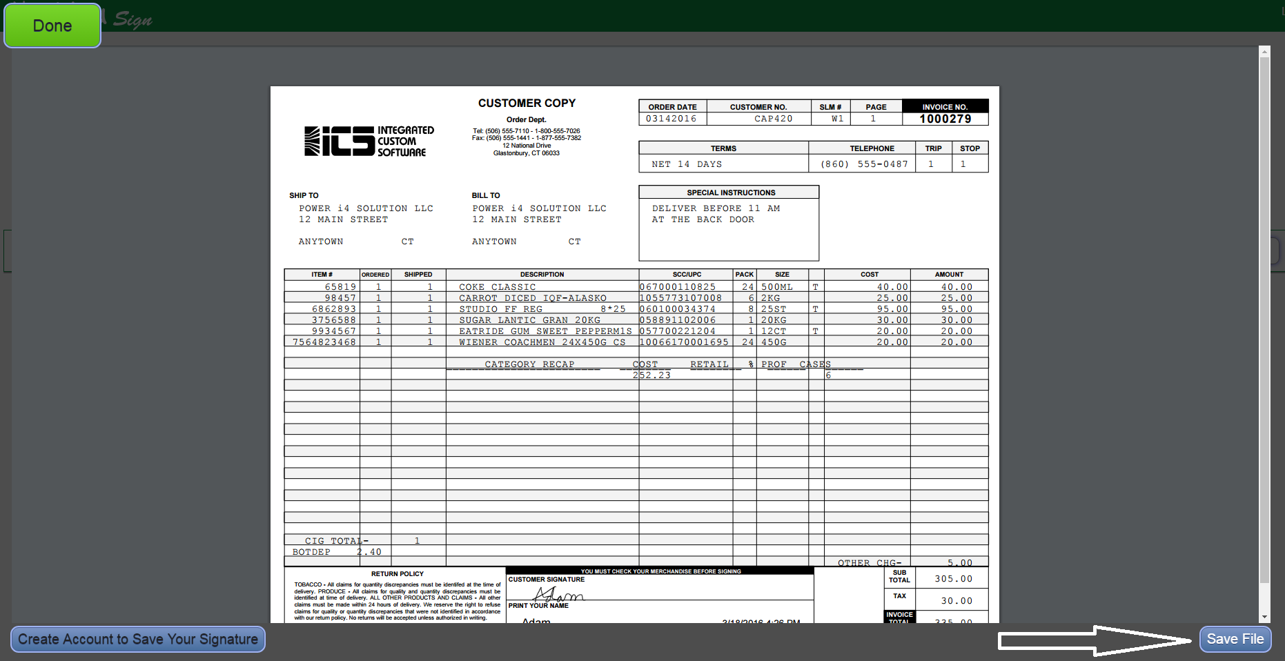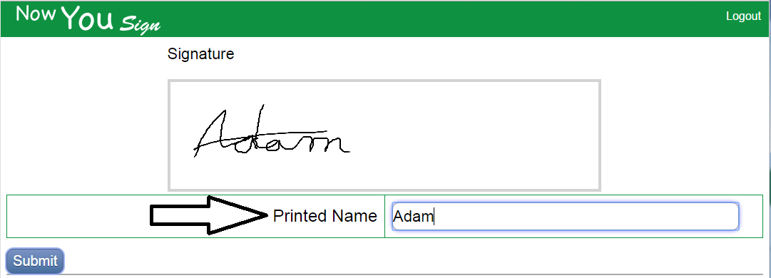 After they click submit they are taken to review the document again, where they will see that their signature and any other information has been added, along with a time and date stamp.